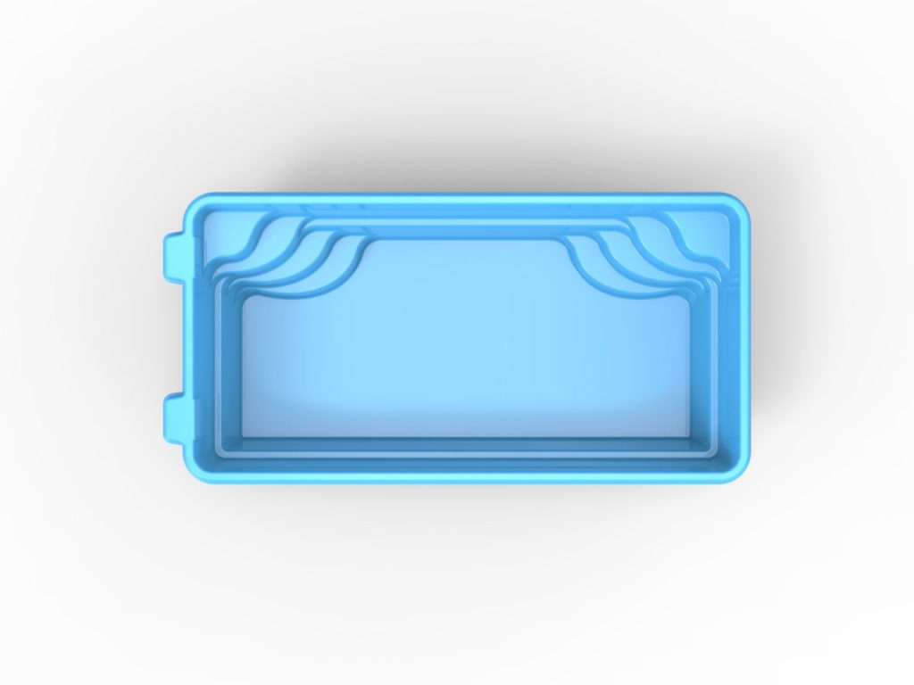 Ein komfortables Becken mit doppeltem Treppensystem, das einen sicheren Ein- und Ausstieg ermöglicht. Die an den Enden integrierten Aussparungen dienen zur unauffälligen Platzierung des Skimmers und sorgen für eine elegante, funktionale Lösung.