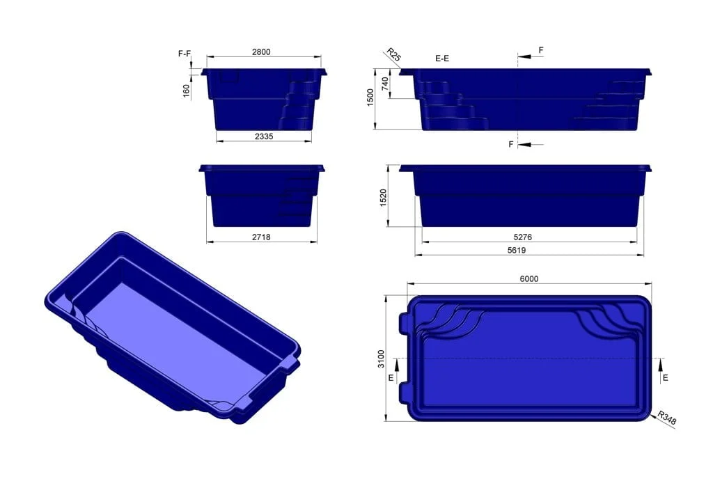 Abmessungen: 6,00 m × 3,10 m × 1,50 m